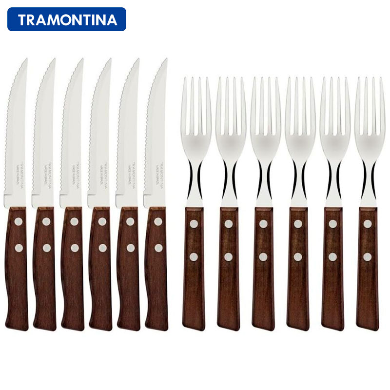 ナチュラルウッド ステーキナイフ&フォーク12点セット シュラスコ・BBQ・パーティーカトラリー TRAMONTINA トラモンティーナ