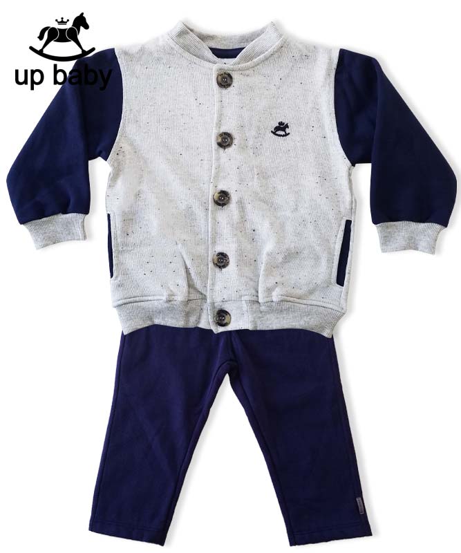 ◆期間限定セール◆【UP BABY】男の子トレーナージャケット&裏起毛パンツセット【おでかけ・あったか】グレー×ネイビー