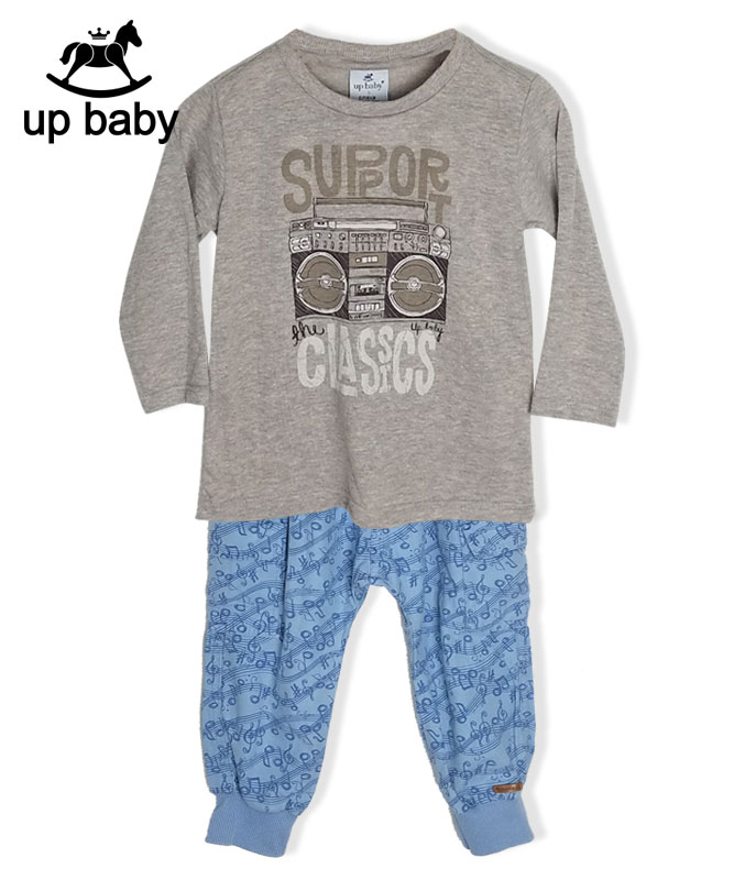 ◆期間限定セール◆【UP BABY】男の子長袖Tシャツ&デザインリブパンツセット【デイリー・ステレオ】ブラウンベージュ×ライトブルー