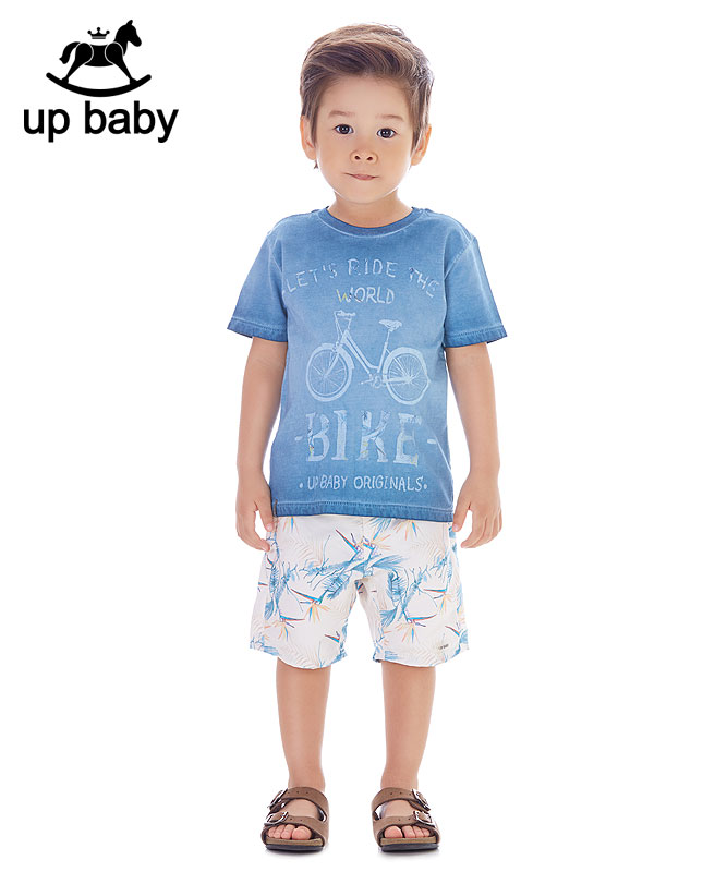 【UP BABY】男の子Tシャツ&ハーフパンツセット【子供服・デイリー・旅行におすすめ】BIKEリゾート|ブルー×アイボリー