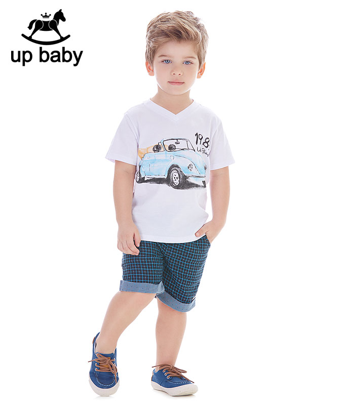 【UP BABY】男の子Tシャツ&ハーフパンツセット【子供服・デイリー・お出かけ着にも】オープンカー|ホワイト×ネイビー
