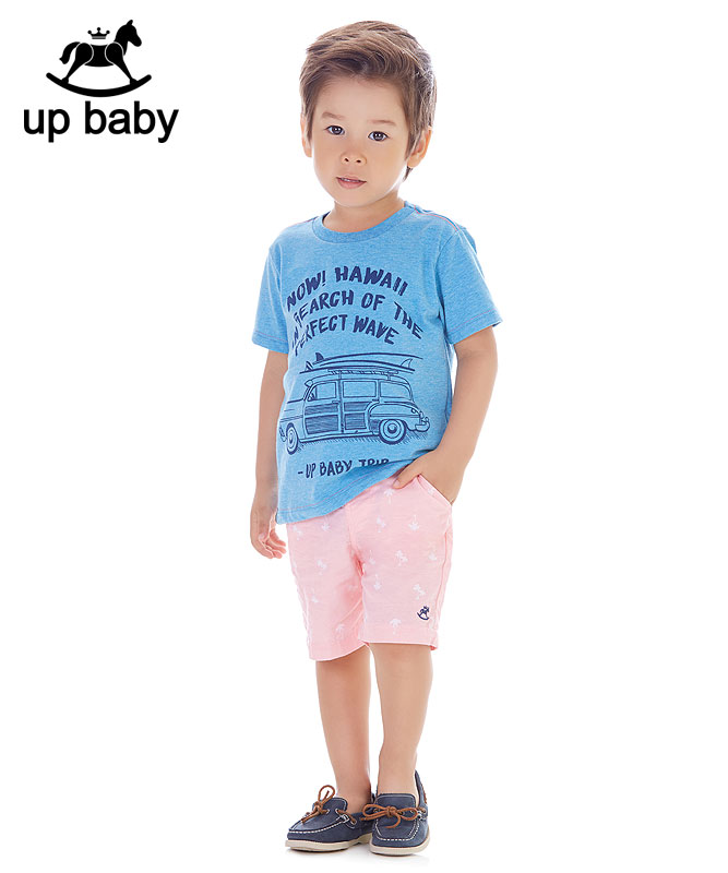 【UP BABY】男の子Tシャツ&ハーフパンツセット【子供服・デイリー・旅行におすすめ】ハワイトリップ|ブルー×コーラルオレンジ