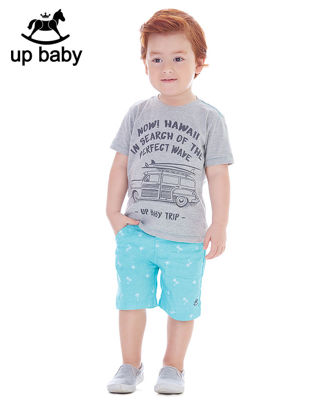 【UP BABY】男の子Tシャツ&ハーフパンツセット【子供服・デイリー・旅行におすすめ】ハワイトリップ|グレー×ミント