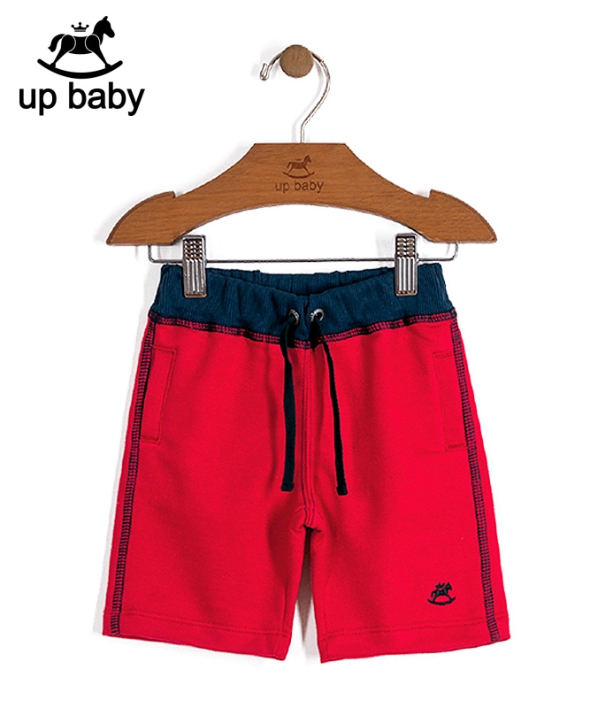 【UP BABY】男の子キッズハーフスウェットパンツ【子供服・1才~3才】ヒモ調節、2ポケット|レッド