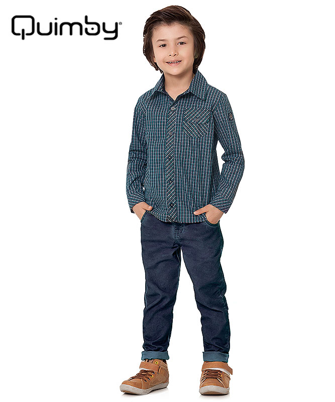 【QUIMBY】男の子長袖チェックシャツ【正統派・お出かけ着】ブルー