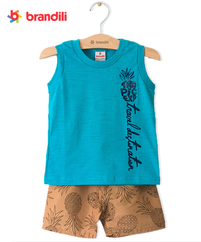 【BRANDILI】男の子タンクトップ&ショートパンツ【上下セット・トロピカル】パイナップル柄|アクア×サンドブラウン