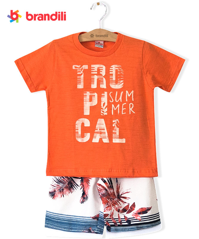 【BRANDILI】男の子Tシャツ&ハーフパンツ【トロピカル・上下セット】ヤシの木|コーラル×マルチ