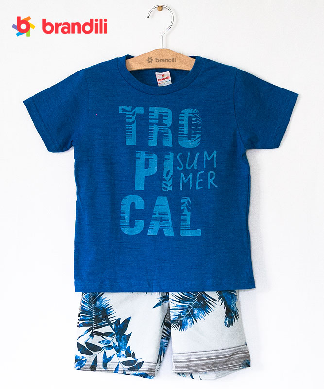 【BRANDILI】男の子Tシャツ&ハーフパンツ【トロピカル・上下セット】ヤシの木|ブルー×マルチ