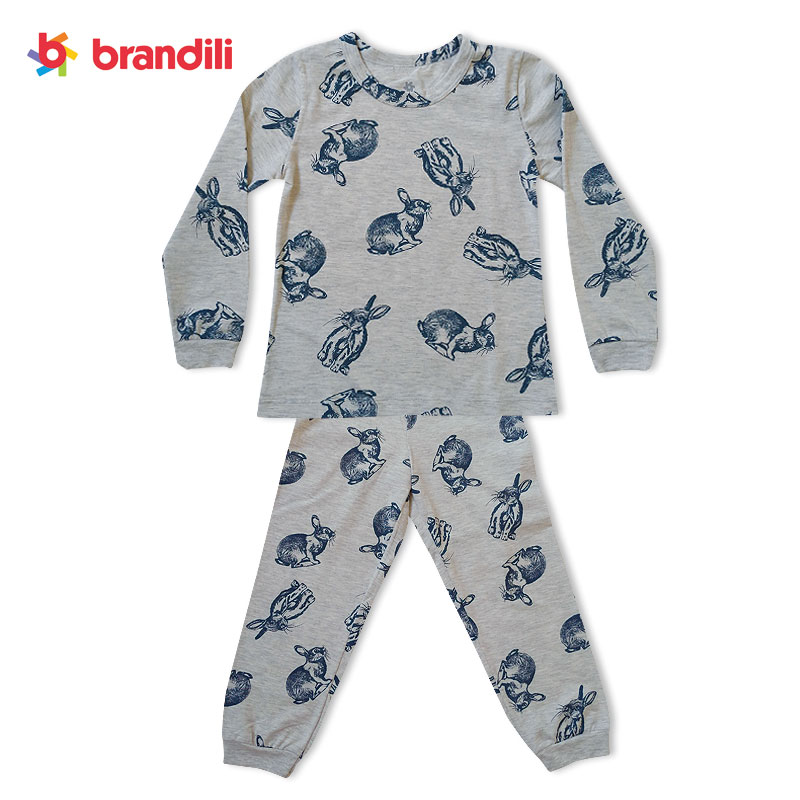 【BRANDILI】男の子長袖Tシャツ&パンツ【パジャマ・上下セット】ライトグレー