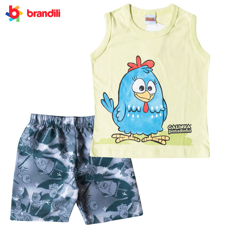 GALINHA PINTADINHA デザインタンクトップ&ハーフパンツ イエローグリーン×グレー brandili