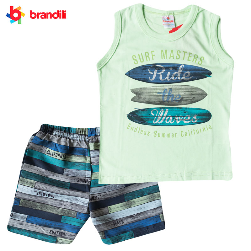 サーフボード柄タンクトップ&ハーフパンツセット 男の子【BRANDILI】グリーン×マルチ