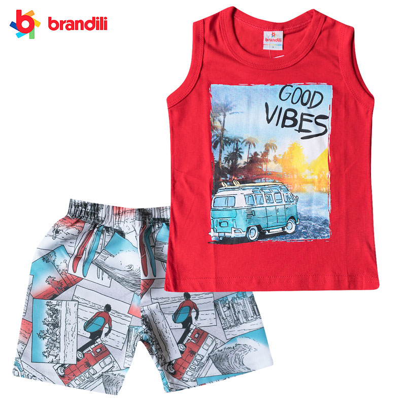 ビーチタウン柄タンクトップ&ハーフパンツセット 男の子【BRANDILI】レッド×マルチ