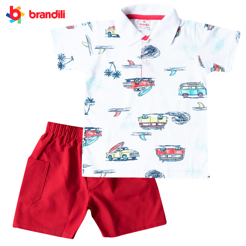 リゾートトリップ柄 襟付きTシャツ&ハーフパンツセット 男の子【BRANDILI】ホワイト×レッド