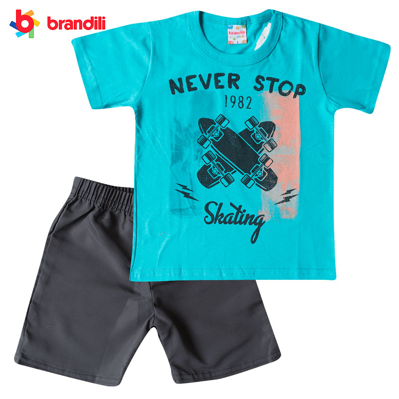 スケートボード柄Tシャツ&ハーフパンツセット 男の子【BRANDILI】子供服 ターコイズ×チャコール