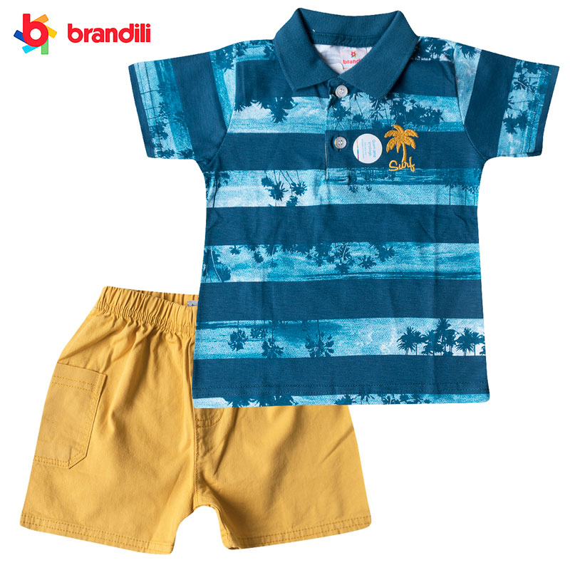 リゾート柄襟付きTシャツ&ハーフパンツセット 男の子【BRANDILI】子供服 ピーコック×イエロー