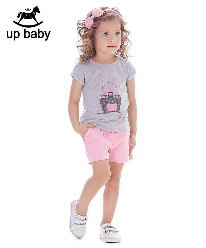 【UP BABY】女の子Tシャツ&ショートパンツセット【子供服・デイリー】スイートキャッスル|グレー×ピンク