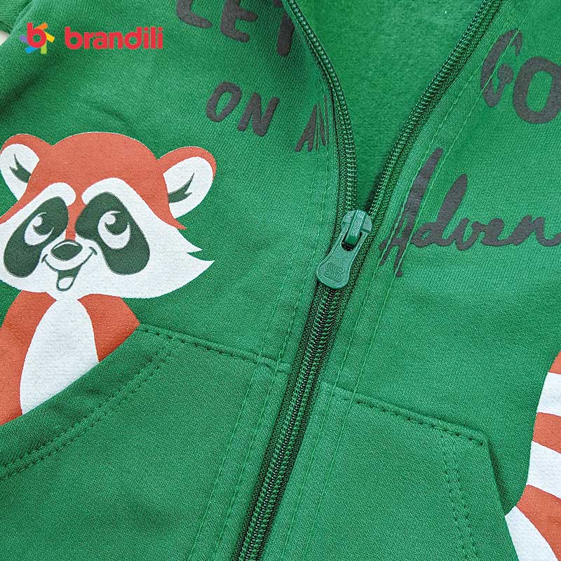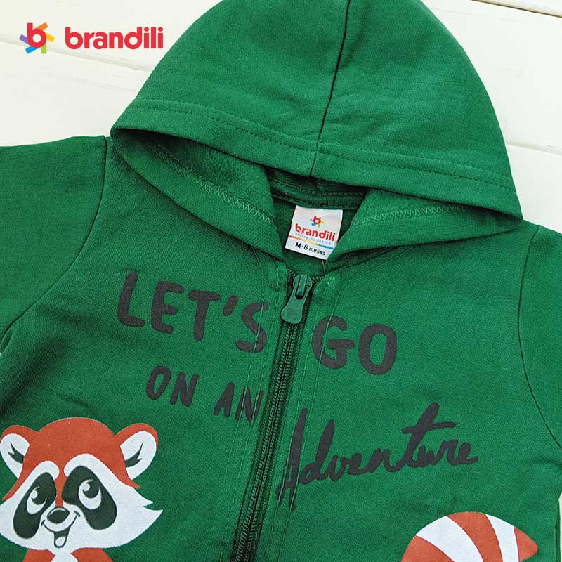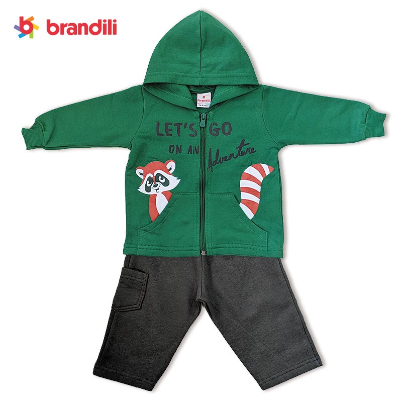 【BRANDILI】男の子フード付きパーカー&パンツセット アニマルデザイン|グリーン×チャコール