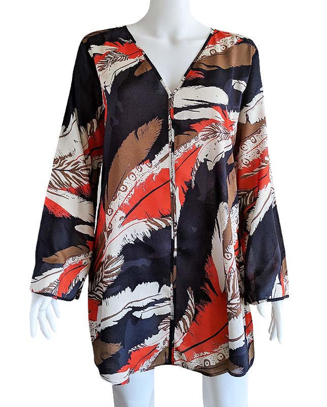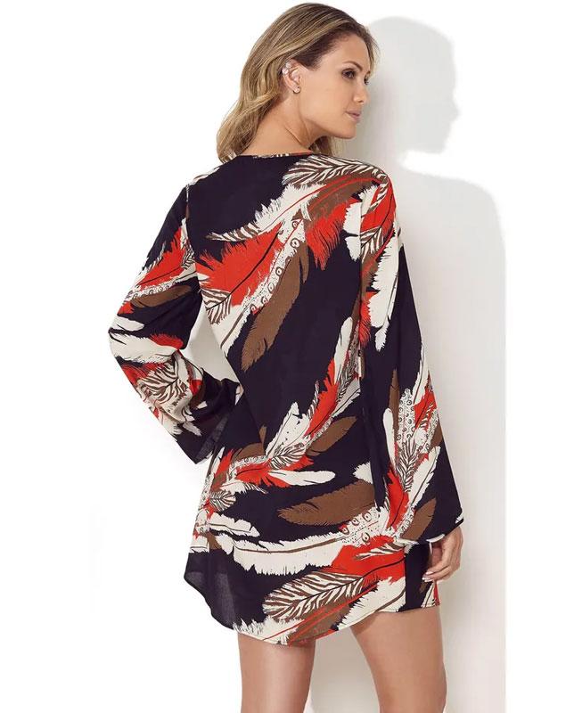 【Morena Rosa】Vネックフェザーデザイン長袖チュニックドレス