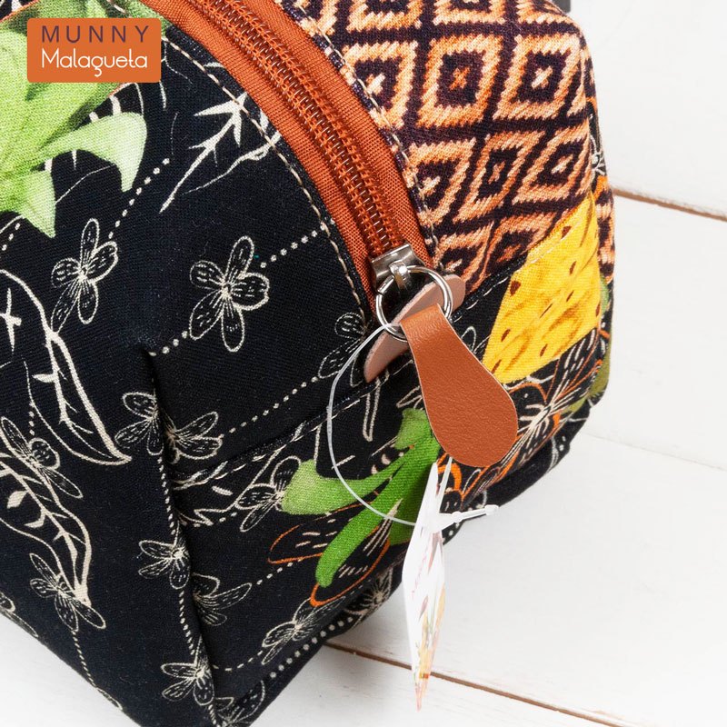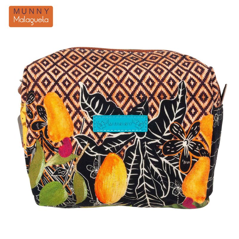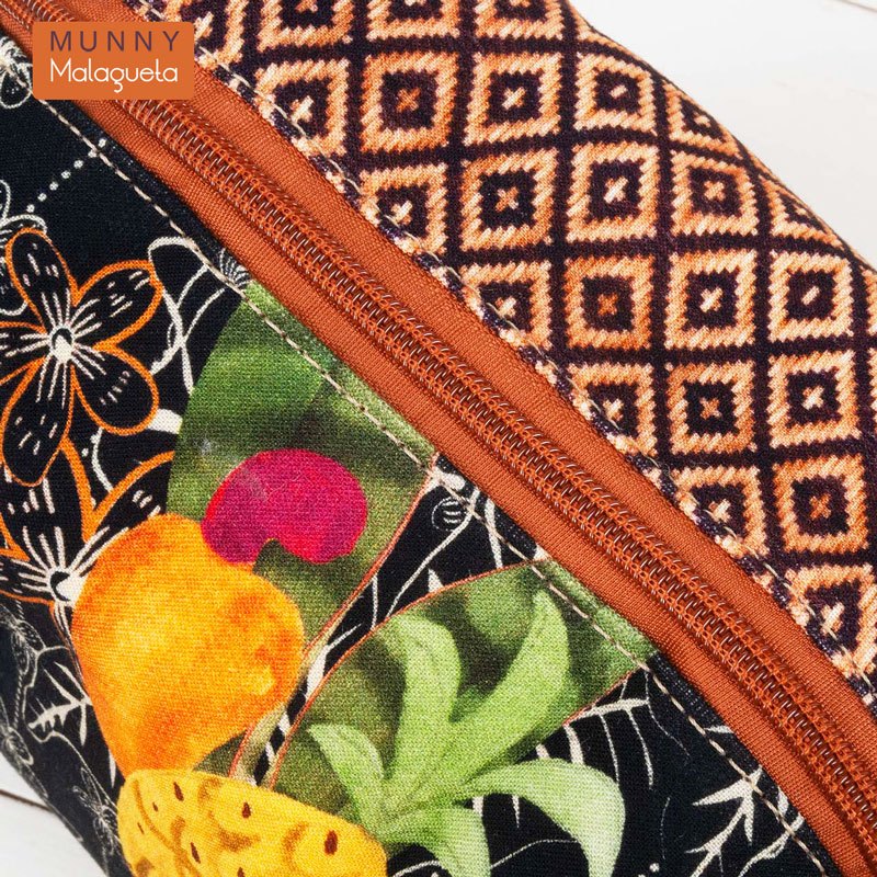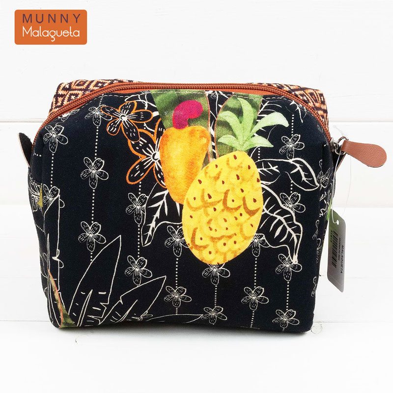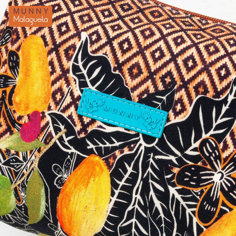 トロピカルフルーツ柄クッションスクエアポーチ MUNNY by Malagueta ブラックマルチ