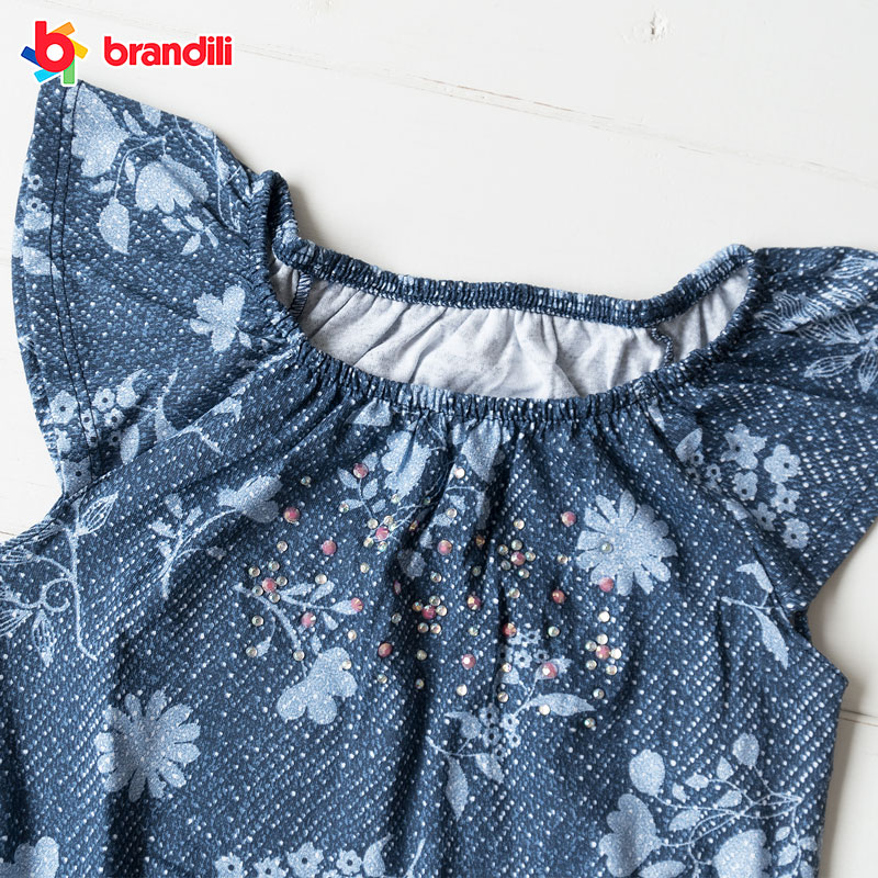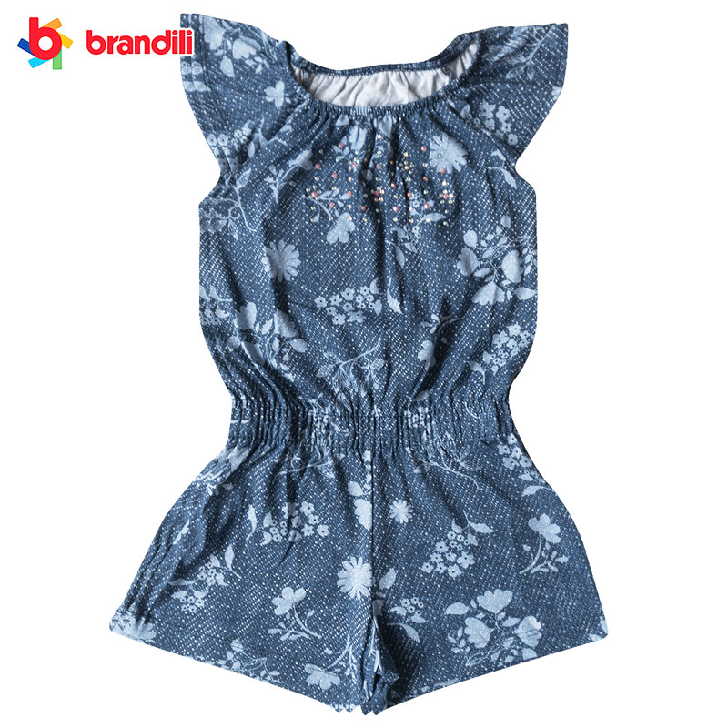 ラインストーン付き ボタニカル柄オールインワン パンツ 女の子【BRANDILI】子供服 ネイビー