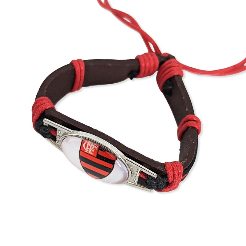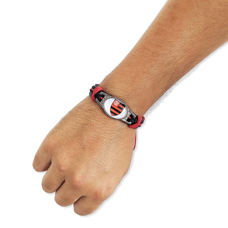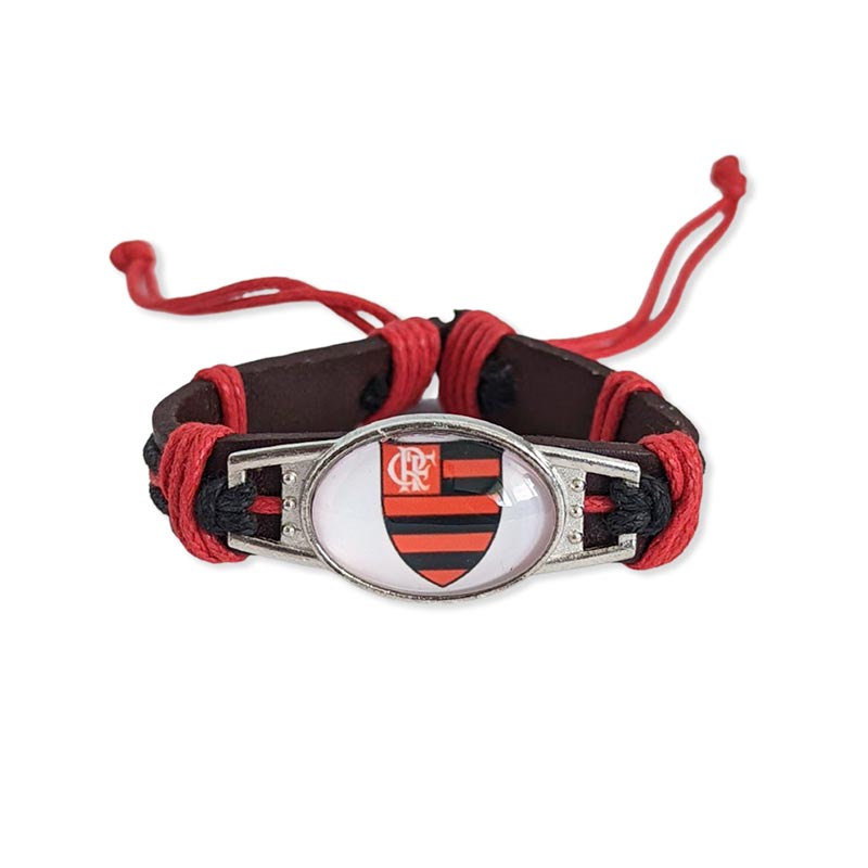 クリアガラスのエンブレムが映えるフラメンゴコードブレスレットです。チームカラーのレッド×ブラックが高級感ある雰囲気のアイテム。コードを引っ張ってお好みのサイズ感に調整できるので、簡単に取り外しができて便利なブレスレットです。
