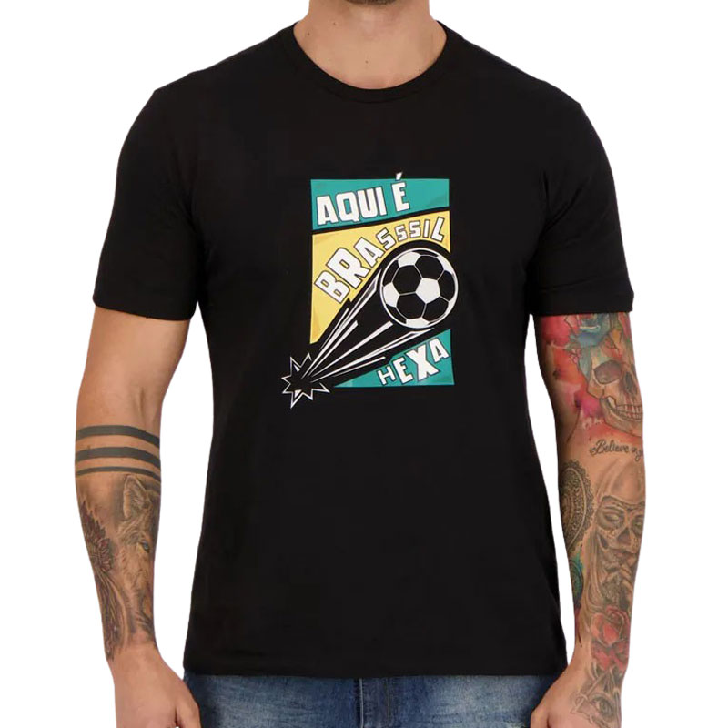 AQUI E BRASIL HEXA ブラジルサッカーデザインTシャツ ブラック