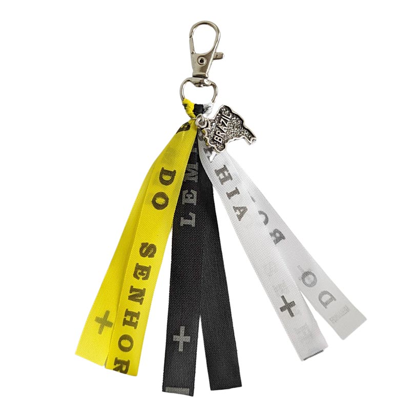 ブラジルのラッキーアイテム、ボンフィンキーホルダーです!ゆらゆら揺れるブラジルの国土チャーム付きです。ブラジルの身の動きジンガを彷彿させるイメージカラーのアイテム。鍵やバッグなど、お気に入りのアイテムにつけてお守りキーホルダーとしてご使用いただけます。