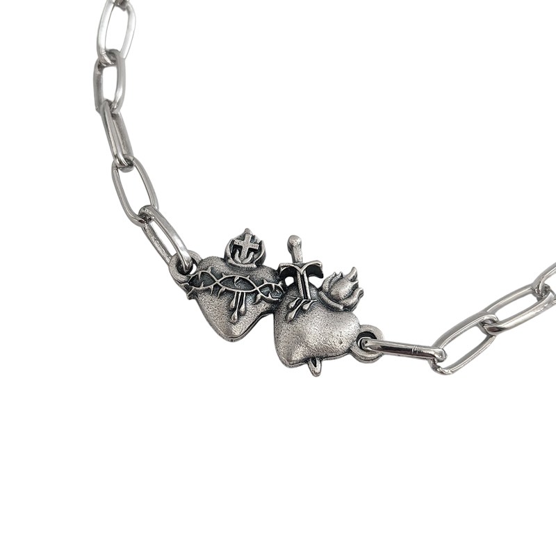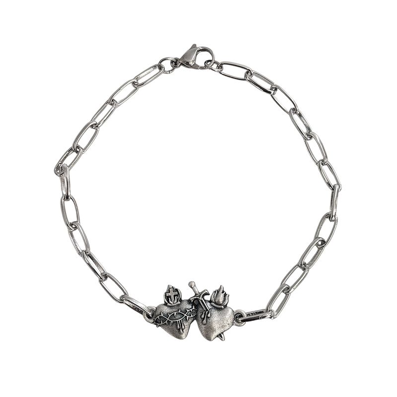 ペアトライバルハート ステンレスチェーンブレスレット シルバー