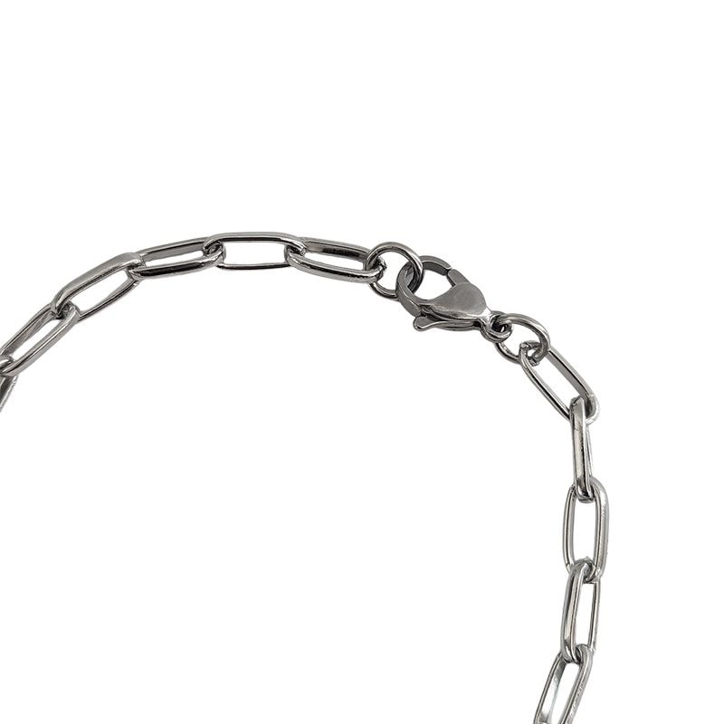 パドロックモチーフ&メダル ステンレスチェーンブレスレット シルバー