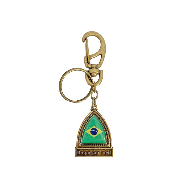アンティーク調ゴールドがクラシックな雰囲気の2WAYキーホルダーです。ブラジル国旗とキリスト(神様)の両面が神々しいデザイン。お守りキーホルダーとしてお好きな場所へ付けて持ち歩くことができます。手の平に納まるちょうど良いサイズ感のキーホルダーです。