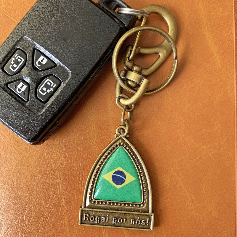 ブラジル国旗&キリストモチーフ アンティーク調2WAYキーホルダー