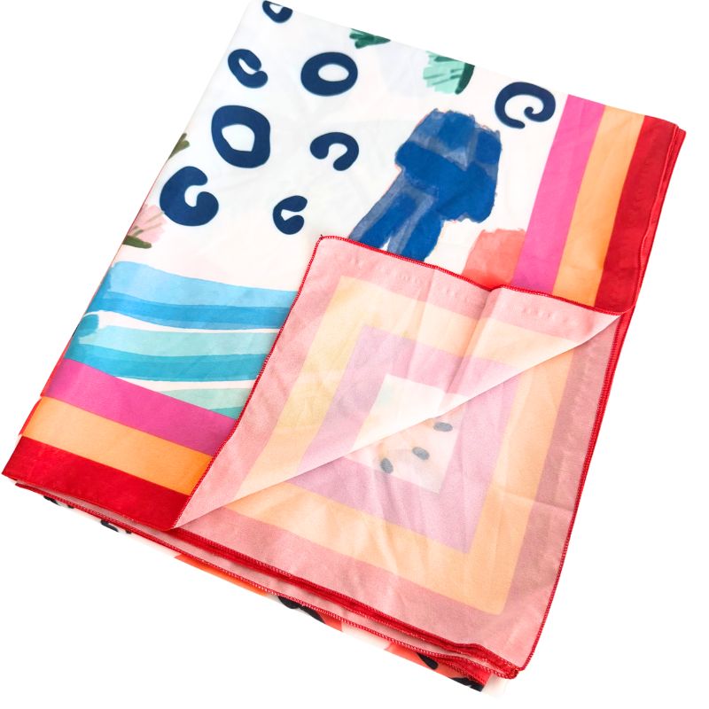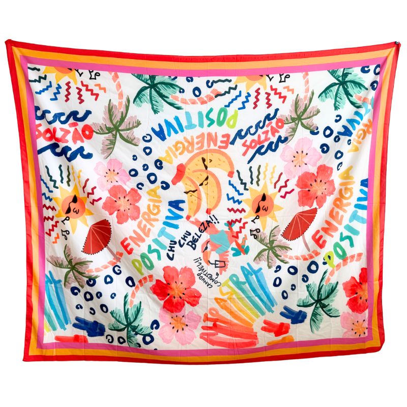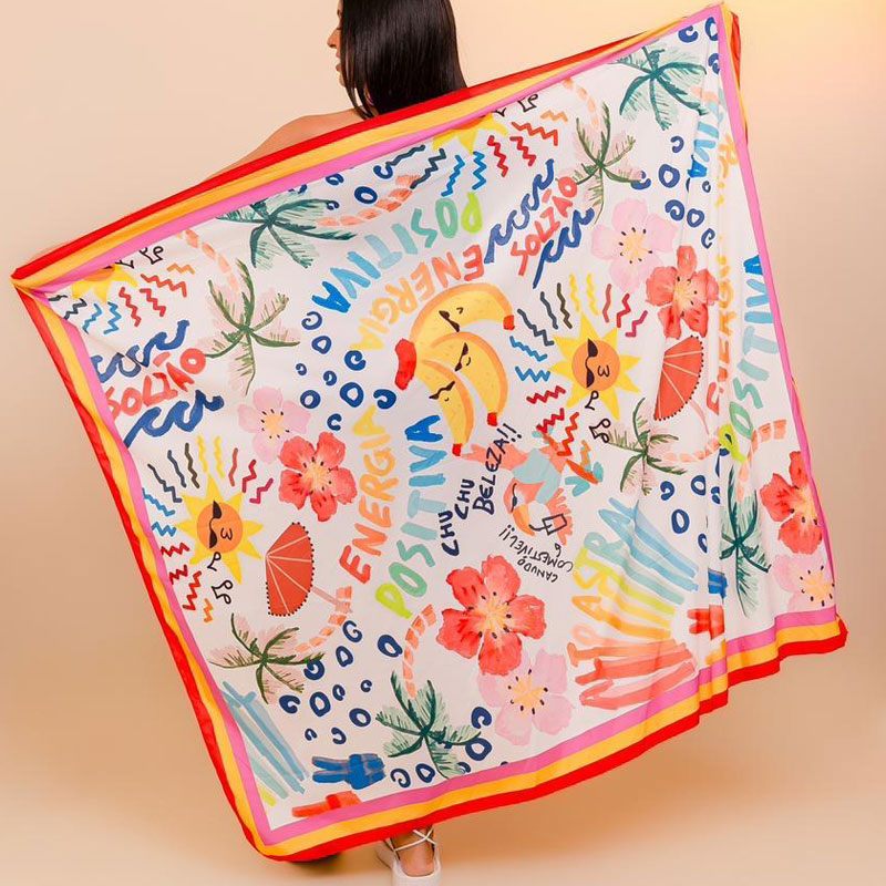 デザイン性も機能性もダブルで兼ね備えたCasa del solの速乾・軽量カンガです。すぐ乾くのでビーチやプールでの使用はもちろん、伸縮性もある生地なのでパレオスカート、スカーフとして、アウトドアやピクニックのシート、インテリアの装飾やテーブルクロスとしてなど、多用途に使用できる万能アイテムです。水彩タッチのエネルギッシュなサマーアイコンがデザインされたカンガです!コンパクトに畳めて持ち運びも楽な軽量タイプなので、バッグに常備しておくと、お出かけ先で何かと便利に使える便利グッズになります!他にはないお洒落なデザインのカンガで視線を独り占め!暮らしを彩るブラジルカンガです!