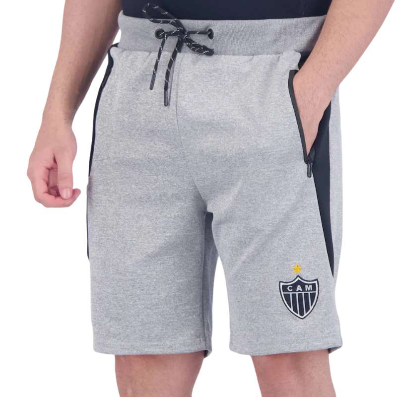 アトレチコミネイロ公式ジップポケット付きストレッチハーフパンツ ATLETICO MINEIRO エンブレム付き グレー