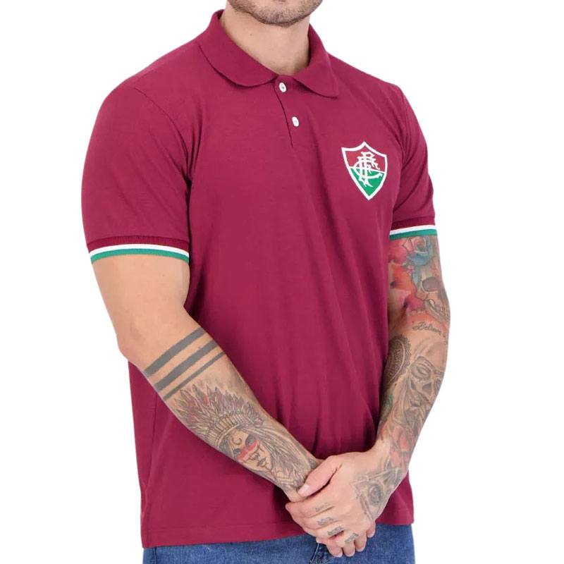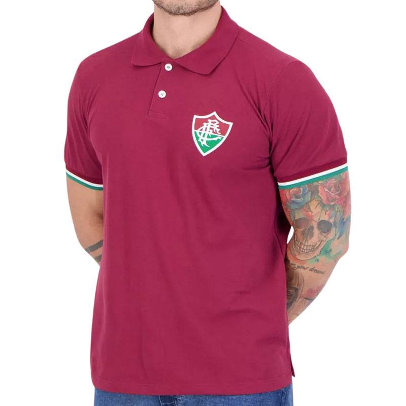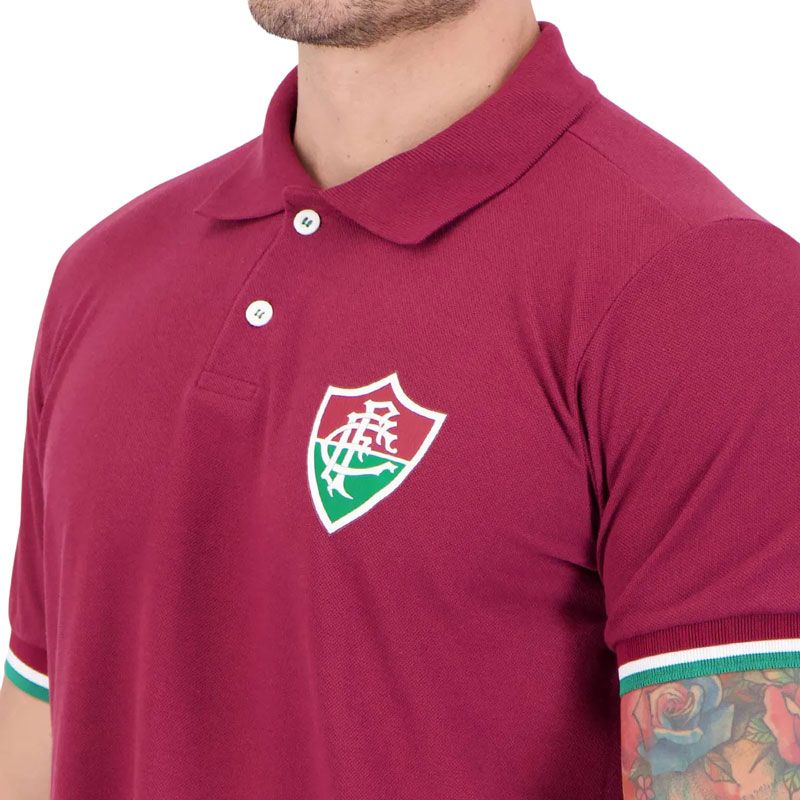 リオの人気サッカークラブチーム、フルミネンセの公式の襟付きポロシャツです。コットンとポリエステルのミックス素材を採用し快適な着心地です。フルミネンセのチームカラーのワインレッドにエンブレムと袖のラインが映えるシンプルでカッコいいデザイン。普段使いはもちろんトレーニングやスポーツシーンなどに幅広くご着用いただけます。