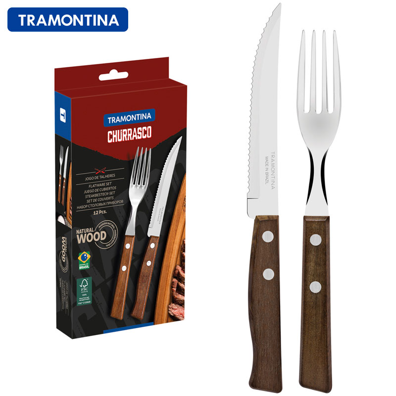 ナチュラルウッド ステーキナイフ&フォーク12点セット シュラスコ・BBQ・パーティーカトラリー TRAMONTINA トラモンティーナ