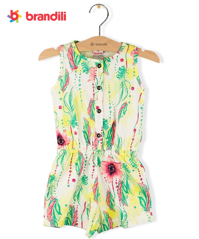 ◆期間限定セール◆【BRANDILI】女の子オールインワン【1枚でOK】お花ライン|イエローマルチ