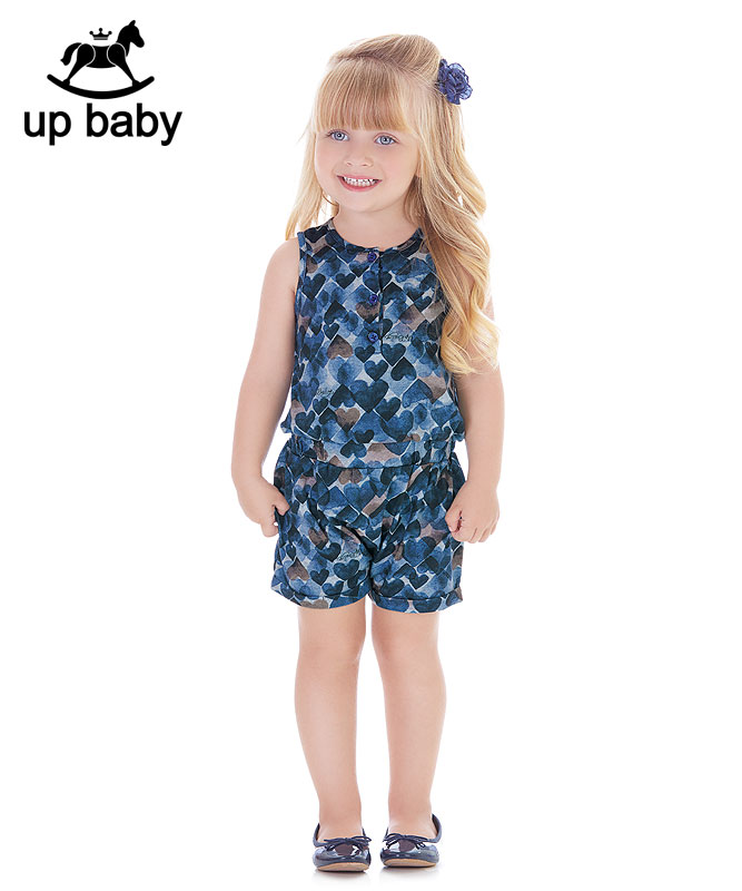 【UP BABY】女の子オールインワン【普段着・1枚でOK】ハートプリント|ネイビー