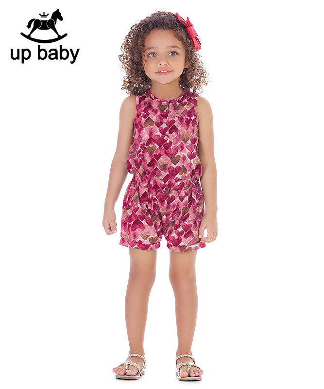 【UP BABY】女の子オールインワン【普段着・1枚でOK】ハートプリント|マゼンダ