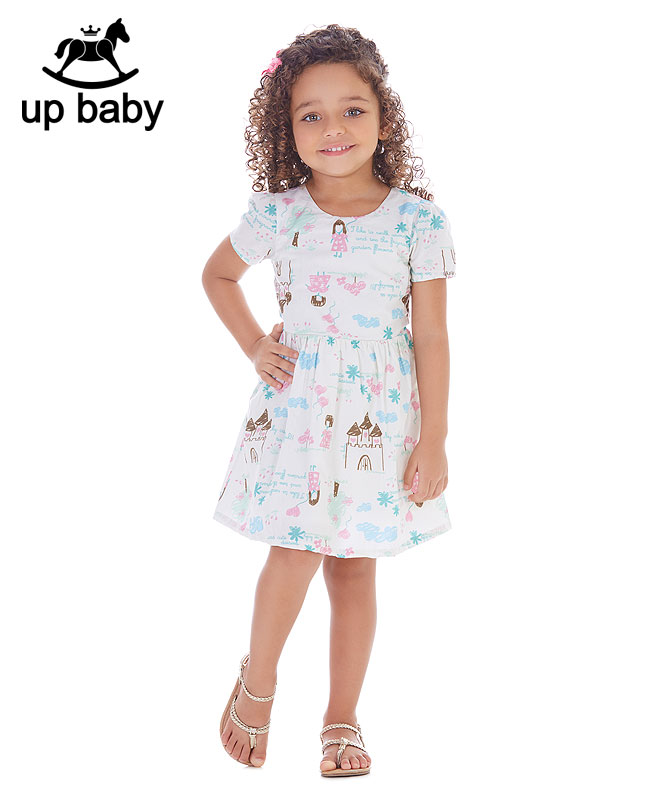 【UP BABY】女の子デザインワンピース【ドレス・ワンピース】お絵かきプリント|アイボリー