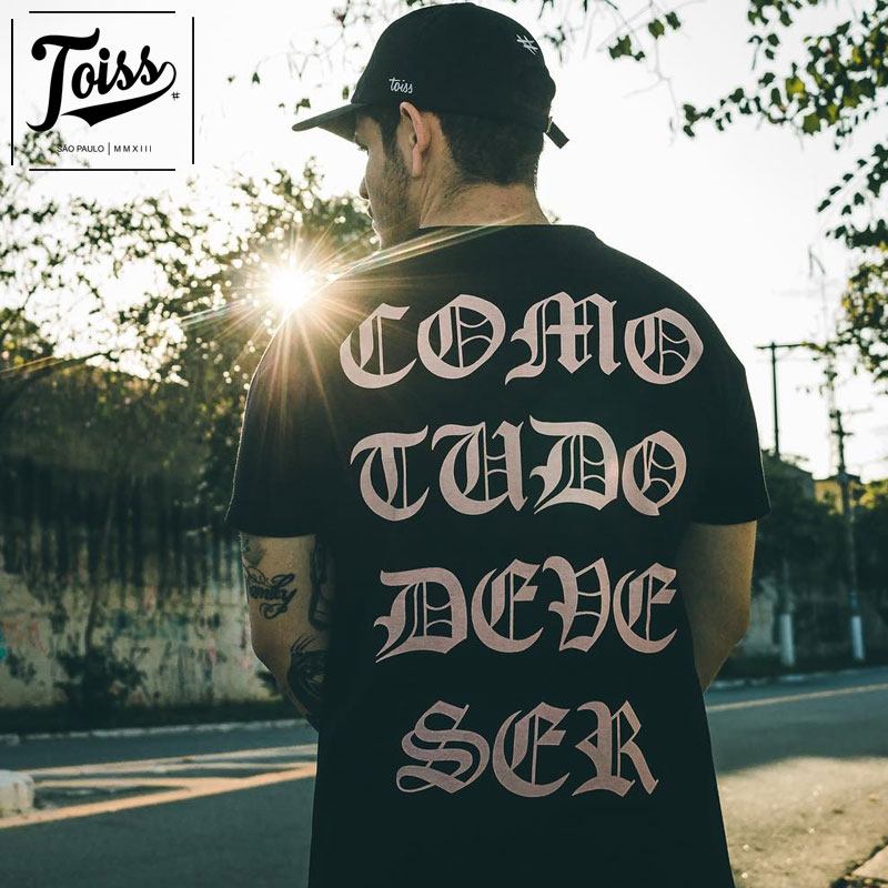 【TOISS】ゴシックレタリングTシャツ COMO TUDO DEVE SER ブラック