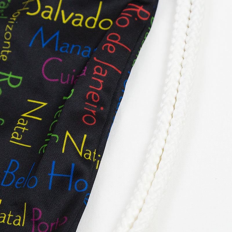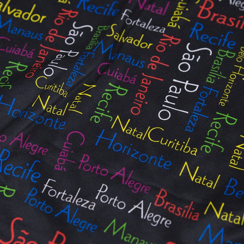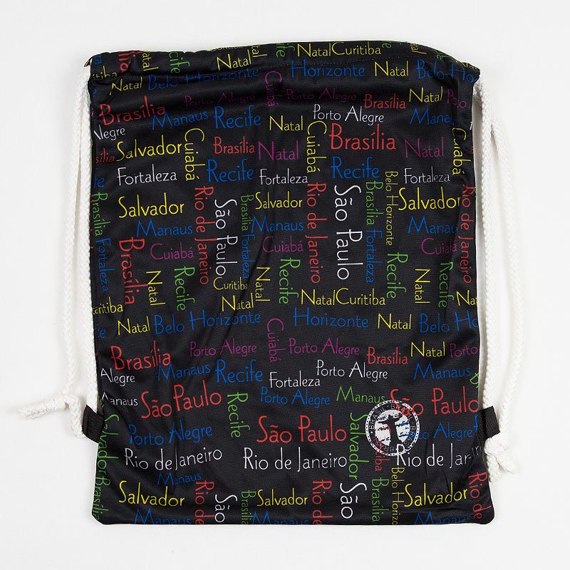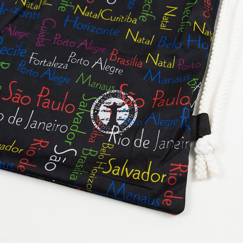 ブラックカラーにブラジルの各都市のロゴがデザインされたカッコいいアイテム。Sao Paulo, Rio de Janeiro, Salvador, Brasiliaなどの文字がカラフルにデザイン!軽くて使いやすいナップザックバッグタイプです。人気のキリスト像のマークが入っていてよりブラジルらしい雰囲気に!