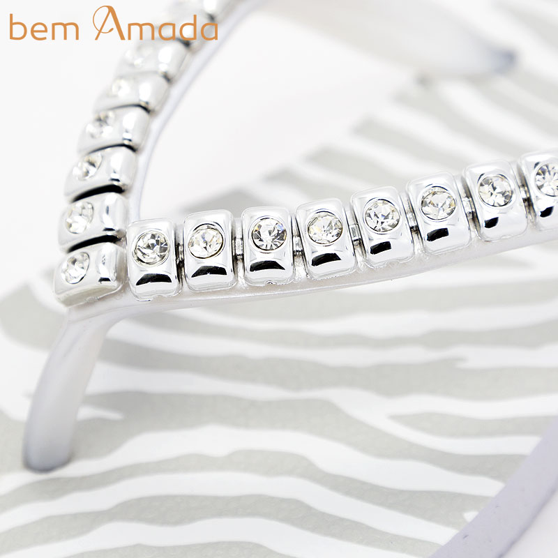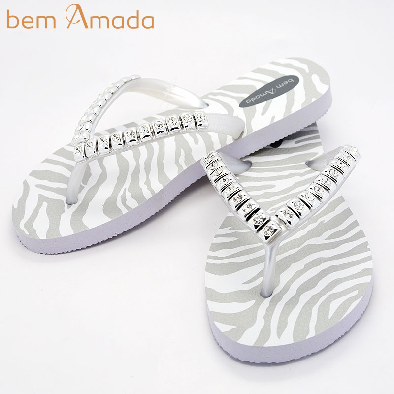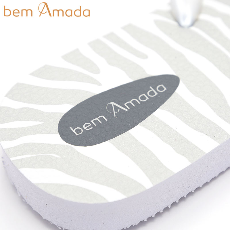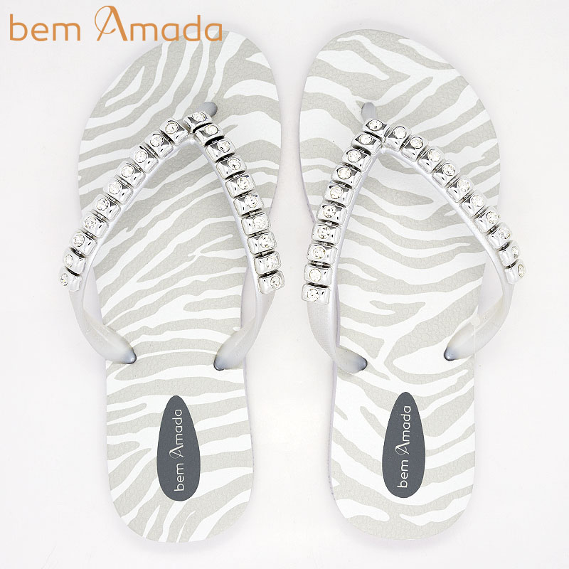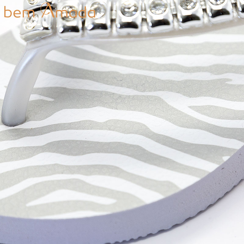 ビジュー付きビーチサンダル【bem Amada】ゼブラZEBRA PRATA|ホワイト