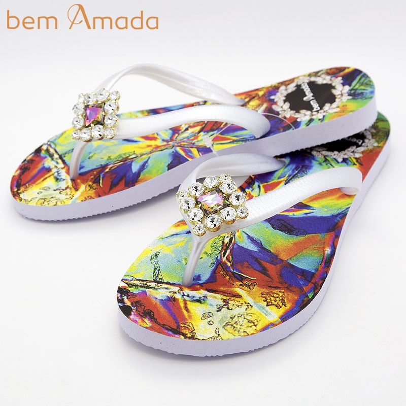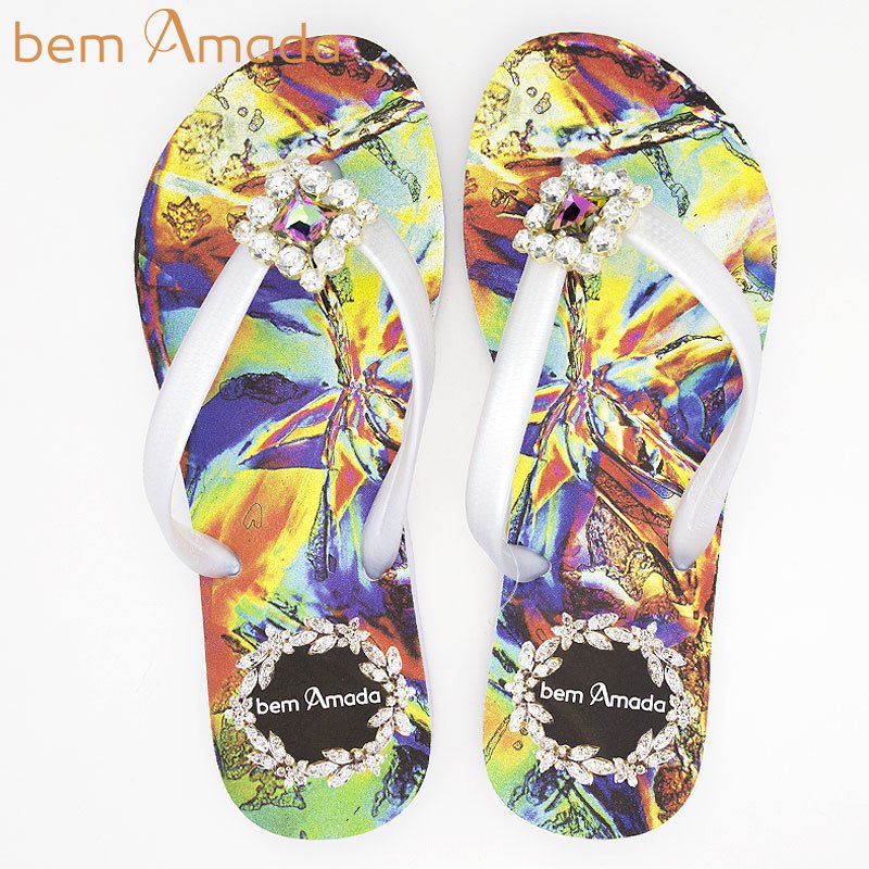◆期間限定セール◆ビジュー付きビーチサンダル【bem Amada】花柄リオデジャネイロ CRISTO|ホワイト