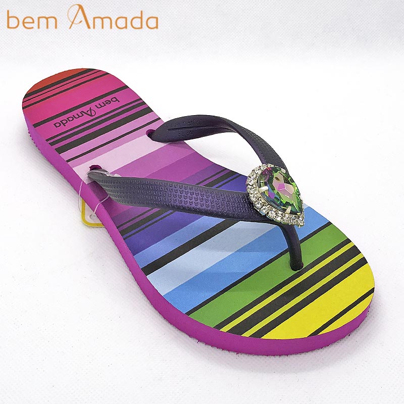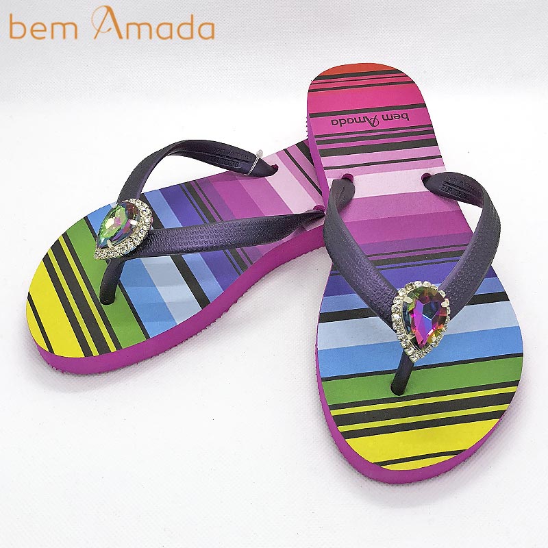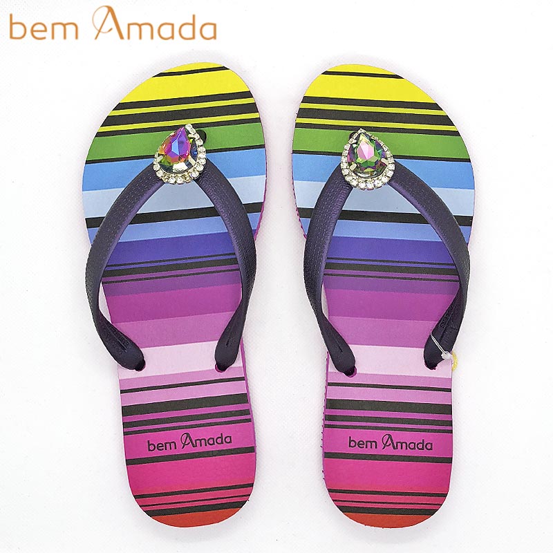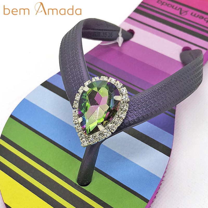 ブラジル発ラグジュアリービーチサンダルブランド、bem Amadaのビジュー付きビーチサンダル!グラデーションレインボーが目を惹く、カラフルかつ上品さのあるデザインです!ティアドロップ型のワンポイントビジュのきらめきがお洒落!普通のビーサンでは物足りないおしゃれさんにピッタリのアクセサリー感覚で履けるサンダルです!