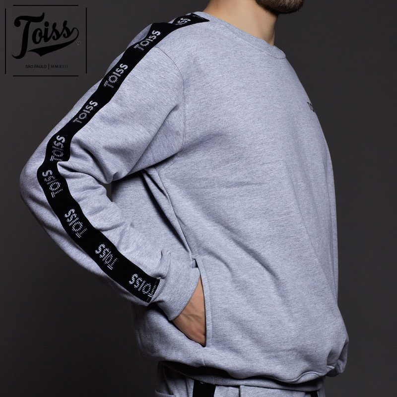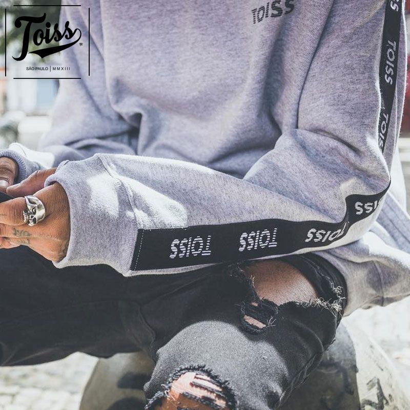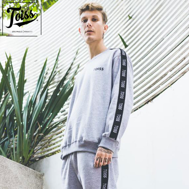 【TOISS】トイス ボーダーロゴ サイドテープ 親指穴付きスウェットトレーナー| グレー