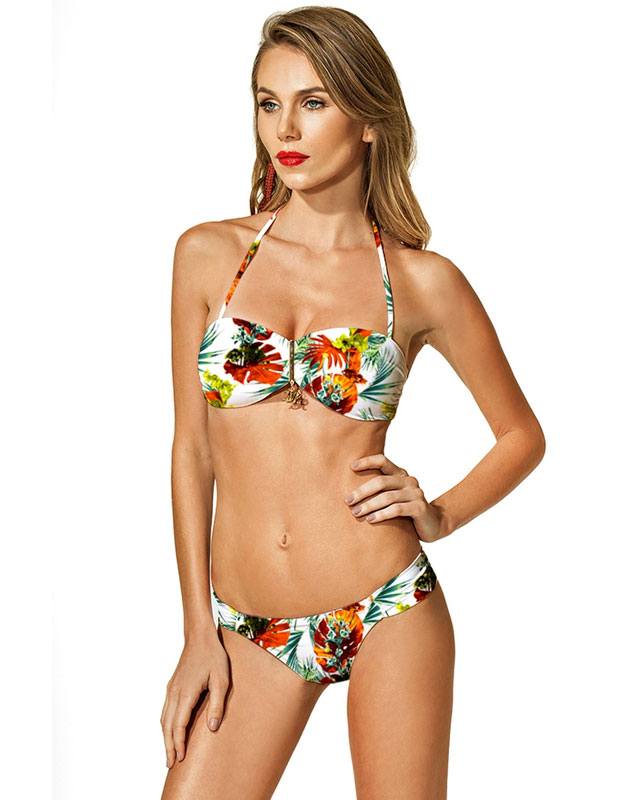 【Morena Rosa】フロントリング付きボタニカルバンドゥ―水着 ホワイトマルチ