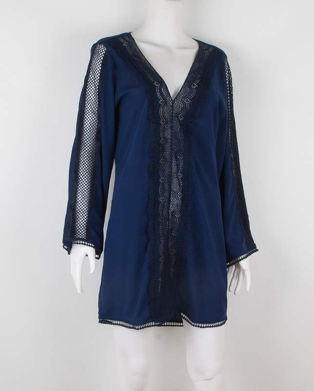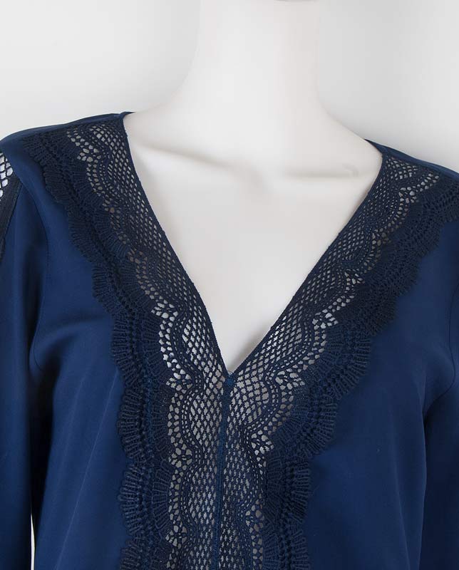 【Morena Rosa】ラグジュアリーレース Vネック長袖ドレス ネイビー
