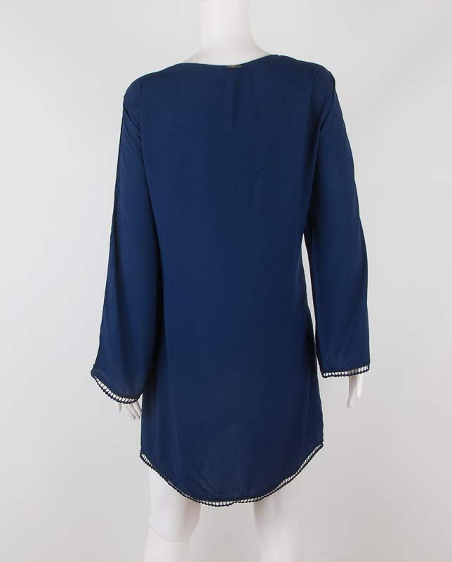 【Morena Rosa】Vネックフェザーデザイン長袖チュニックドレス
