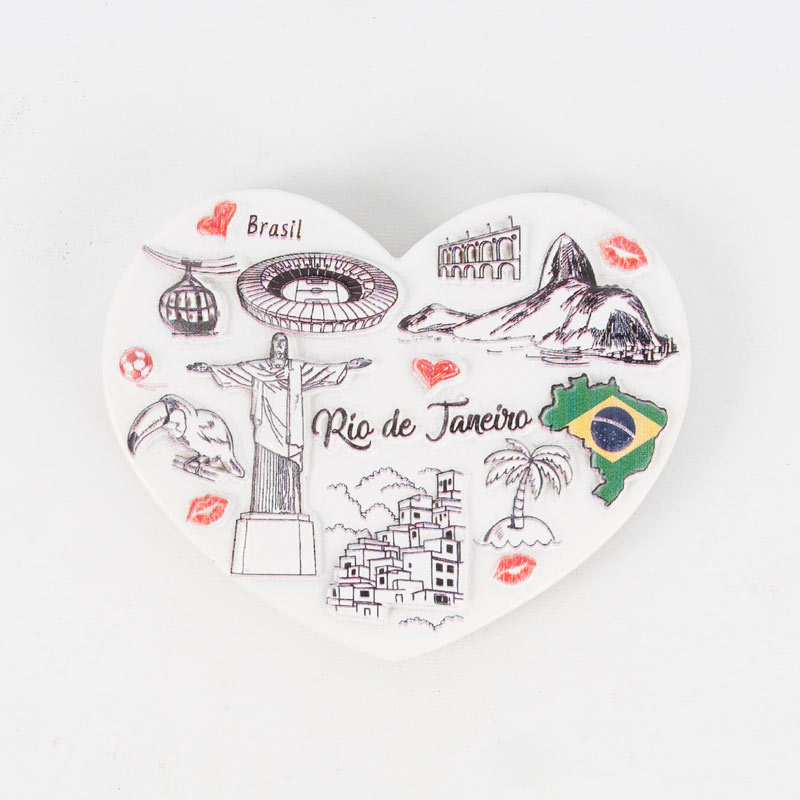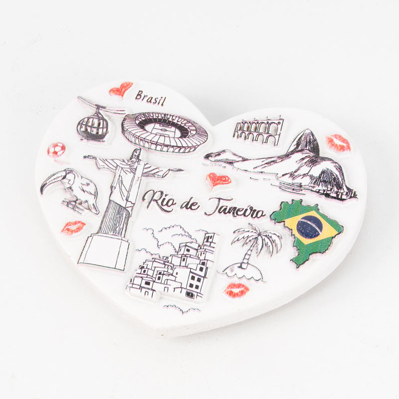 ブラジルのリオデジャネイロらしさがぎゅっと入ったハート型のかわいいマグネットです。ポイントカラーでデザインされたブラジル国旗がお洒落!お好みの場所に貼ってお楽しみいただけます。