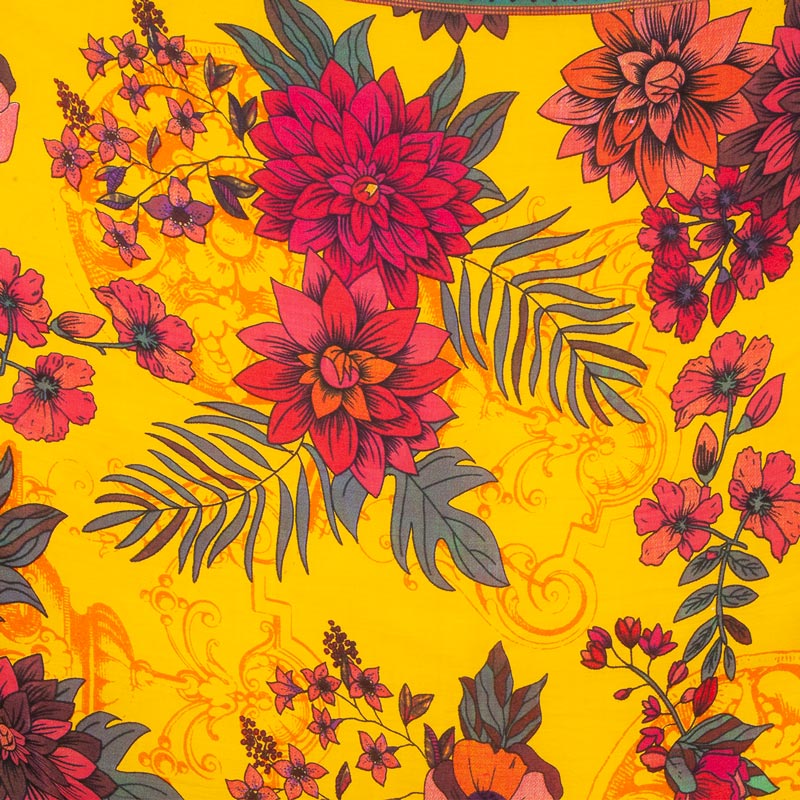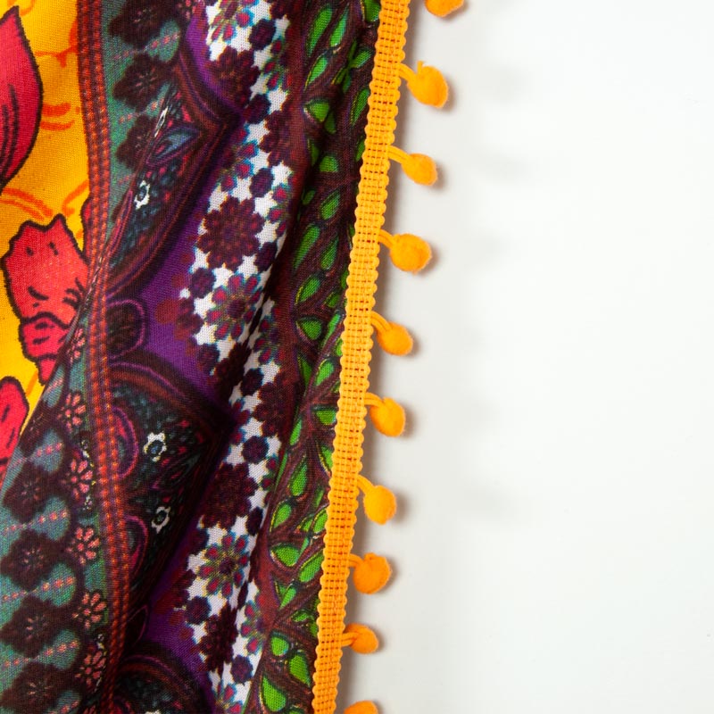 ジプシー花柄 BOHOボヘミアン【ポンポン付き ブラジルカンガ】大判クロス イエロー